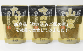 お知らせ 【新商品】「炊き込みご飯の素」を社員で実食してみました! 【新商品】「炊き込みご飯の素」を社員で実食してみました!こんにちは!今回は新発売の 「炊き込みご飯の素(たけのこ・きのこ・山菜)」の3種を実際に炊いて社員みんなで試食してみました!炊飯器のスイッチひとつで、ほっとする和の味わいが楽しめる、手... 2025.11.07 お知らせ炊き込みご飯の素製品紹介